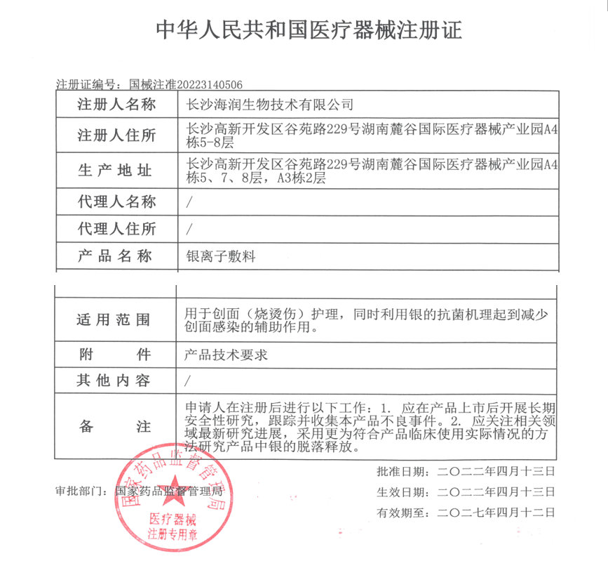 近期,长沙海润生物技术有限公司的三类医疗器械银离子敷料获批上市,湖南普瑞玛作为非临床研究单位,独立承担了银离子敷料的毒理学研究,力助该品种的顺利获批,这是近年来普瑞玛承担的非临床研究的第5个获批的外用制剂(含药品、器械等)。